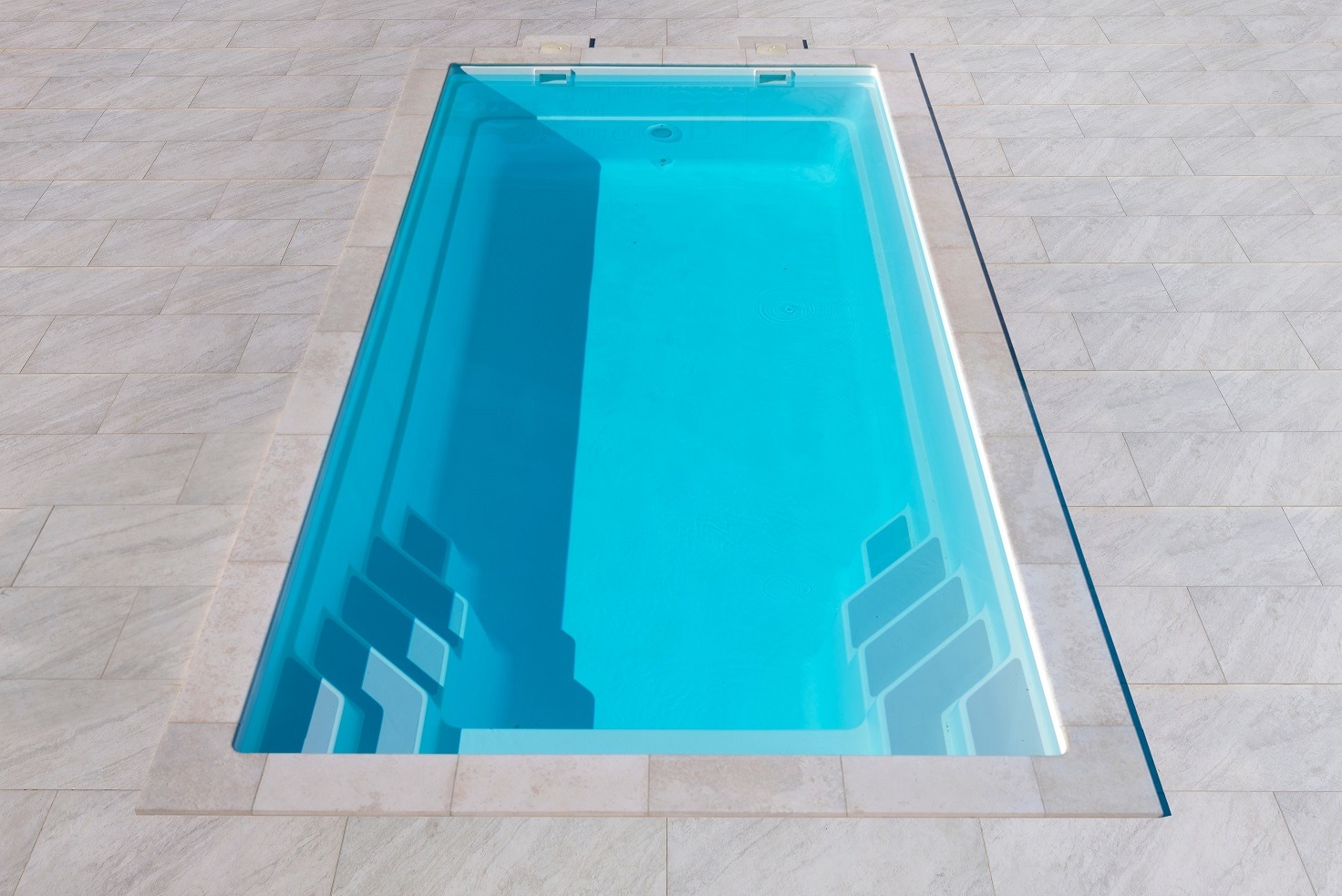 Das fertige Becken wird als komplette Einheit geliefert und vor Ort eingesetzt. Die Oberfläche besteht aus einer widerstandsfähigen Gelcoat-Schicht, die UV-stabil, pflegeleicht und beständig gegenüber Poolchemie ist. Schmutz haftet deutlich schlechter, was die Reinigung erleichtert und den laufenden Pflegeaufwand reduziert.